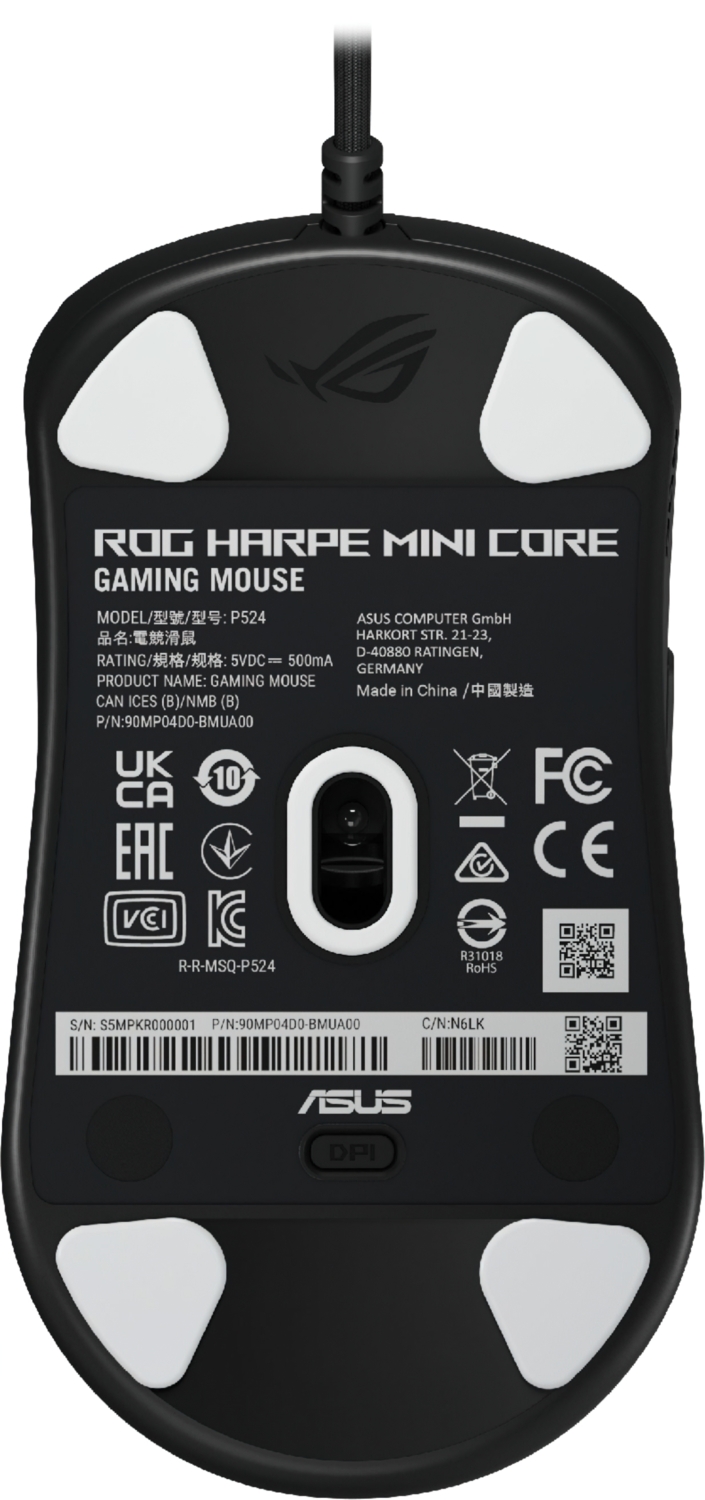 ROG Harpe Mini Core, створена за участю кіберспортсменів, повторює форму моделі ROG Harpe Ace Mini для максимального комфорту й точного контролю, особливо при хватах «кіготь» і пальцями. Легкий корпус (52 г) дозволяє легко й точно керувати мишею як у змагальних баталіях, так і під час розслаблених сесій.