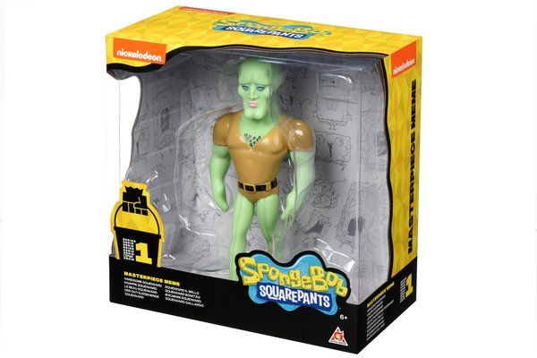 Іграшка «Красунчик Сквидвард» (з закритими очима). Мультгерой виконаний з приємного на дотик пластика, іграшка упакована в досить стильну коробку, на якій відзначено, що це іграшка 1 серії. У іграшки рухливі голова і руки, а підставка надійно фіксує іграшку на будь-якій поверхні. Фігурка входить в колекцію пластмасових іграшок SpongeBob Masterpiece Memes Collection, в яку входять ексклюзивні герої мультфільму: Губка Боб з веселкою, Губка Боб неандерталець, здивований Патрік і красень Сквидвард.