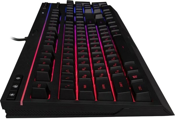 Клавіатура HyperX Alloy Core RGB з фірмовою яскравою світловою смужкою HyperX та динамічними ефектами RGB-підсвічування ідеально підходить для геймерів, які хочуть підкреслити стиль та покращити ефективність роботи своєї клавіатури без великих витрат. Завдяки шести ефектам підсвічування та трьом рівням яскравості вона забезпечує найкраще співвідношення ціни та якості. Alloy Core RGB має посилену раму з армованої пластмаси та забезпечує виняткову міцність та надійність для геймерів, яким потрібна довговічна клавіатура. М'які на дотик клавіші мають тактильний безшумний відгук і підтримують функції Anti-Ghosting і Key Rollover геймерського рівня. Клавіатура має вологозахищену конструкцію (120 мл рідини), тому проблеми з пролитими напоями вам не завадять. Завдяки спеціальним кнопкам керування мультимедіа та кнопкам швидкого доступу для підсвічування та ігрового режиму всі засоби контролю будуть у вас під рукою. Функція блокування клавіатури дозволяє вимикати клавіатуру без необхідності переведення у сплячий режим усієї системи. Стильна, функціональна та довговічна клавіатура Alloy Core RGB – відмінне мультимедійне рішення для геймерів.