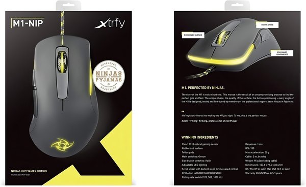 Історія М1 не є короткою. Ця миша – результат безкомпромісного процесу пошуку ідеального зчеплення і відчуття. Унікальна форма, якість поверхні, розташування кнопок – кожен кут M1 розроблений, протестований і відрегульований членами професійної киберспортівной команди Ninjas in Pyjamas.