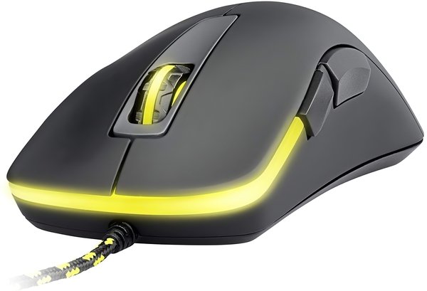 Чорний корпус миші увінчаний жовтої світлодіодним підсвічуванням Xtrfy. Незалежно від того, чи любите ви грати з включеним підсвічуванням або без, яскраву або дискретну, M1 буде виглядати впевнено завдяки своєму гладкому дизайну.