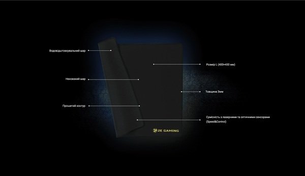 Велика ігрова поверхня Mouse Pad L, розміром 400 × 450 мм, товщиною 3 мм – оптимальне рішення для одночасного розташування миші і клавіатури і ергономічної організації ігрового простору.