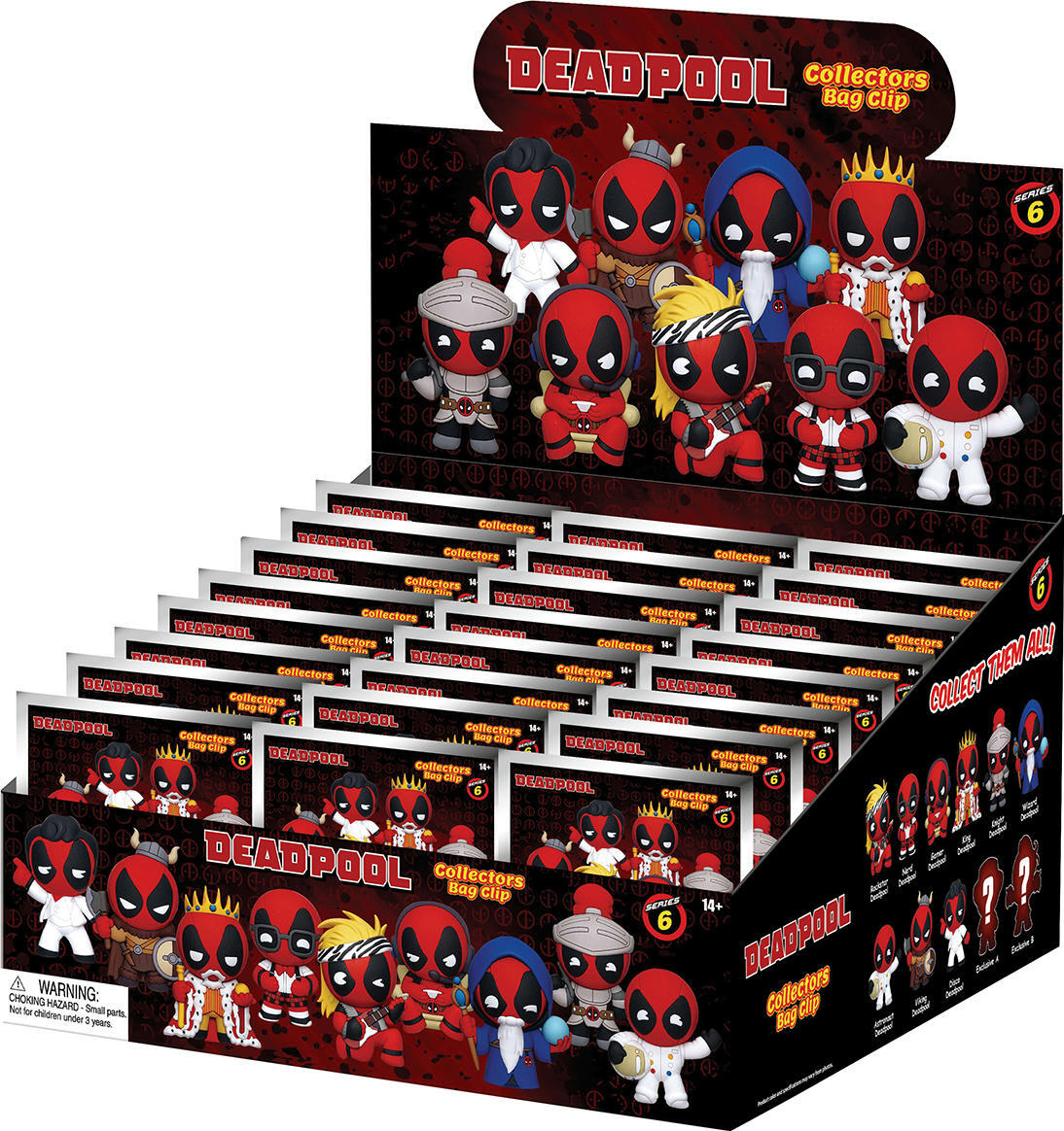 - В асортименті 11 образів Дедпула, з яких 2 рідкісних: Рок-зірка, Ботан, Геймер, Король, Лицар, Чарівник, Астронавт, Вікінг, Диско, На пляжі (рідкісний) та Чирлідер (рідкісний).