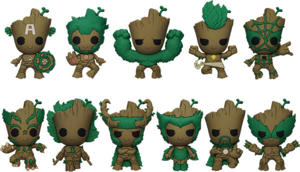- В асортименті 11 образів Ґрута у вигляді різних героїв Marvel: Капітан Америка, Залізна Людина, Халк, Капітан Марвел, Людина-павук, Чорна Пантера, Чорна Вдова, Локі, Багряна відьма, Доктор Стрендж і Росомаха.