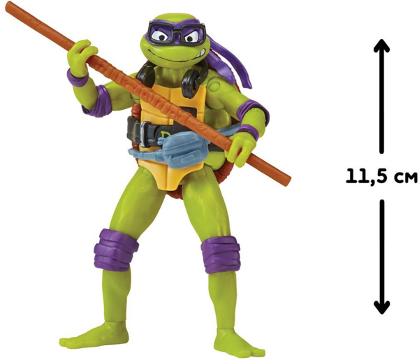 Приготуйтеся до знайомства з фігурками та аксесуарами Mutant Mayhem, створених за мотивами нового анімаційного фільму Черепашки-ніндзя! Донателло - мозок команди Черепашок, який стежить за тим, щоб вони завжди були оснащені найновішою технікою. Він не може бути лідером групи, але це не означає, що він не може бути кумиром! Тепер, коли він покинув каналізацію, настав час Донателло боротися за свою мрію! Вдень він розробник ігор, а вночі зірка K-Pop - разом зі своїми братами, його найбільшими (а може, і єдиними) шанувальниками. Нові пригоди чекають на вас! Фігурка черепашки з 12 точками артикуляції допоможе розібратися з силами зла в Нью-Йорку! Зберіть усі фігурки TMNT Mutant Mayhem для вашої штаб-квартири черепашок-ніндзя! Рекомендовано для дітей віком від 4 років.