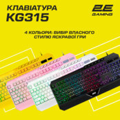 Нова модель мембранної ігрової клавіатури від 2E GAMING поєднує яскравий дизайн, широкий функціонал і доступну ціну. Клавіатура KG315 оснащена RGB-платою і підтримує 11 різноманітних сценаріїв підсвічування з можливістю тонкого налаштування швидкості і яскравості кольорів. Клавіатура повнорозмірна, зручна, має надійну міцну конструкцію корпусу і м’який тайпінг. Завдяки вбудованому чіпу, окрім 104 основних кнопок модель KG315 пропонує 6 додаткових програмованих макро-клавіш (G1-G6). Потужне фірмове програмне забезпечення дозволяє значно розширити базовий функціонал. Форма корпусу ергономічна і розроблена спеціально для комфортних тривалих сесій, а підсвічування символів допоможе ефективно грати або навчатися навіть у повній темряві. Для ще більшої зручності в корпусі клавіатури передбачений тримач смартфону або планшету. Клавіатура 2E GAMING KG315 RGB пропонує чотири кольори перемоги: чорний, білий, жовтий і рожевий, що яскраво доповнять будь-який сучасний сетап.