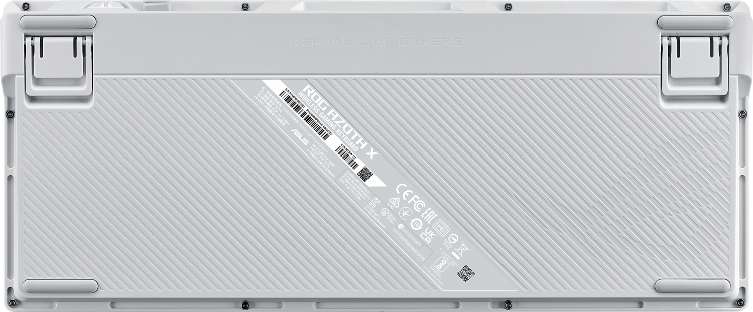 ROG Azoth X має дві пари ніжок різної висоти, що дає змогу встановлювати клавіатуру під одним із трьох кутів нахилу відповідно до вподобань.