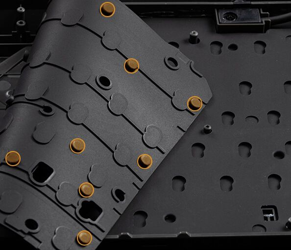 Клавіатура ASUS TUF Gaming K3 Gen II відзначається продуманою конструкцією із силіконовими прокладками, які мінімізують вібрацію й забезпечують приємне тактильне відчуття під час натискання клавіш. У ній також використовується звукопоглинальна піна, яка додатково поглинає різні звуки й відлуння для зменшення рівня шуму.