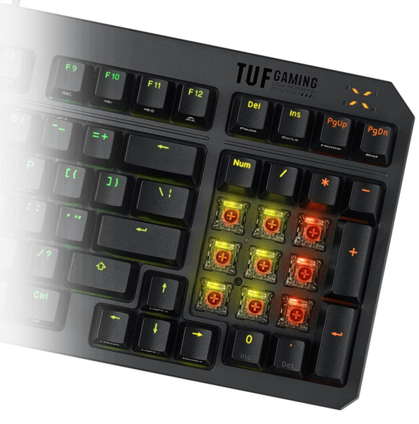 Компактна й функціональна геймерська клавіатура ASUS TUF Gaming K3 Gen II має 97 клавіш із виокремленою групою навігаційних клавіш.