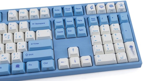 Виготовлені з міцного PBT пластику із застосуванням dye-sublimation технології та вигравіюваними символами на боках. Клавіші гладкі та приємні на дотик, менше брудняться, а символи не стираються і не відчуваються під час друку.