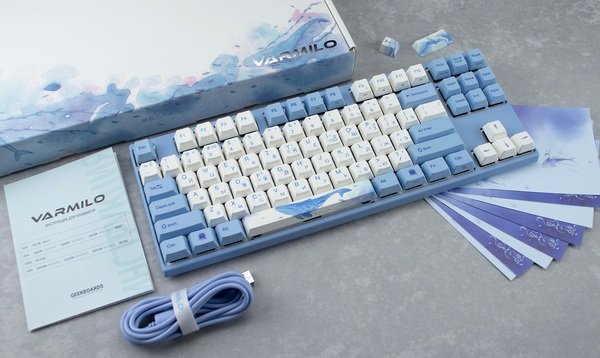 Змащені стабілізатори, ручне складання, естетичний дизайн – кожна клавіатура Varmilo як витвір мистецтва. Дизайн на кейкапах Sea Melody розповідає історію про гармонію життя: вмираючи, кити падають на дно та продовжують служити іншим мешканцям океану десятки років. Так Varmilo передали не лише колір, а й дух безмежних вод. У оновленій версії клавіатура отримала USB Type-C порт замість Mini-USB. Він захований у центрі під корпусом, а на самій клавіатурі є центральна та дві бічні канавки під кабель.