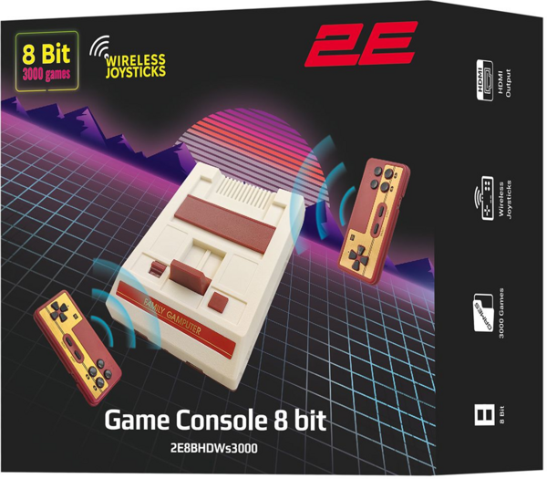 Консоль 2Е 8 bit HD має 3000 вбудованих ігор, з-поміж яких класичні аркади, головоломки, гонки та багато іншого. Модель сумісна з різноманітними іграми, до того ж усунуто затримки під час геймінгу, що є важливим для шанувальників динамічних ігор.