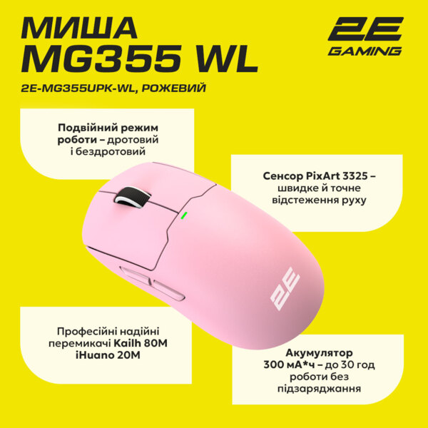 - Ігрова миша 2E Gaming MG355 WL Pink (2E-MG355UPK-WL)