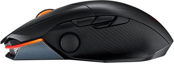 - Ця миша здатна заряджатися бездротовим способом за стандартом Qi. Для цього її достатньо лише покласти на Qi-сумісний зарядний пристрій, наприклад килимок ROG Balteus Qi, наділений барвистим підсвічуванням і призначений спеціально для геймерів.