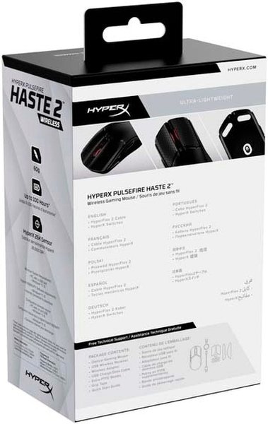 Миша HyperX Pulsefire Haste 2 Wireless створена для геймерів, які не можуть дозволити собі втрачати ані мілісекунди і хочуть мати свободу бездротового підключення. Наші дизайнери оптимізували оригінальну Pulsefire Haste Wireless, створивши її нащадка в міцному корпусі, з блискучою продуктивністю та 100 годинами автономності, але вагою лише 61 г. Pulsefire Haste 2 Wireless оснащена дворежимним бездротовим підключенням, що дозволяє перемикатися між бездротовим з'єднанням 2,4 ГГц і Bluetooth, а також зарядним кабелем, який дозволяє користуватись мишею в дротовому режимі під час заряджання. Також наша команда створила високопродуктивний набір компонентів HyperX, серед яких виділяється високоточний датчик HyperX 26K, що має власну роздільну здатність до 26 000 точок на дюйм зі швидкістю відстеження до 650 IPS (16,5 м/с). Pulsefire Haste 2 Wireless оснащена фірмовими перемикачами HyperX, які забезпечують тактильний і звуковий зворотний зв'язок на кожне приємне натискання і розраховані на термін служби до 100 мільйонів натискань. Ви також насолоджуватиметеся чудовим фізичним контролем над мишею завдяки накладкам, що входять до комплекту, надгнучкому паракордовому кабелю та глайдам з чистого тефлону. Отримайте максимальну віддачу від кожного руху миші з програмним забезпеченням HyperX NGENUITY: створюйте макроси для 6 програмованих кнопок, налаштовуйте параметри DPI та персоналізуйте RGB-підсвітлення.
