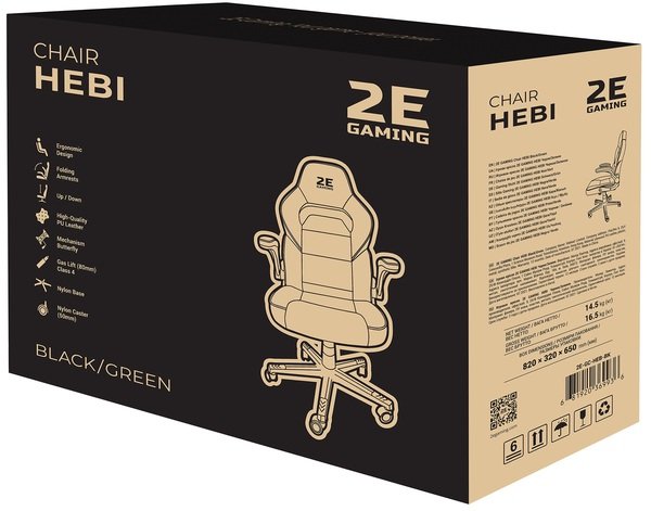 Опис Крісло ігрове 2E Gaming HEBI Black/Green