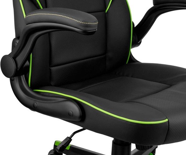 Компактний ергономічний дизайн. Яскраві зелені вставки надають свіжості атмосфері та підкреслюють унікальний характер власника. Усе враховано, але нічого зайвого. Крісло добре впишеться в атмосферу підліткової кімнати, сприятиме як ігровим перемогам, так і успіхам у навчанні.