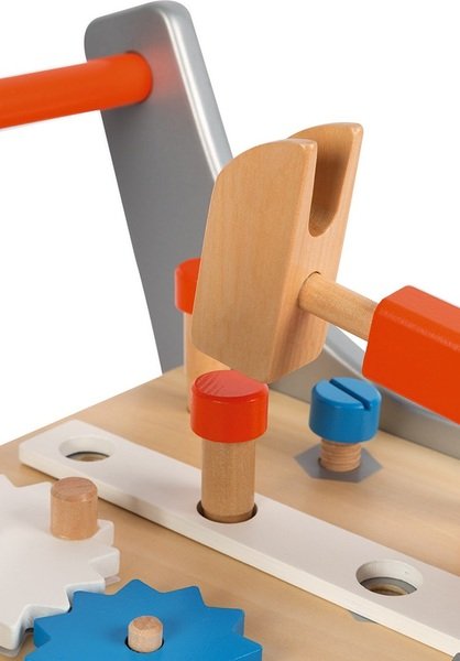 На мой взгляд самое нужное и важное достоинство в игровом наборе Мастерская на колесах от Janod, это способность заинтересовать ребенка и конечно качество изготовления всех деталей. Выполнено тут все действительно хорошо, нет никакого пластика, даже краска не стирается от постоянной игры. Для развития у детей логики и моторики он тоже отличный.