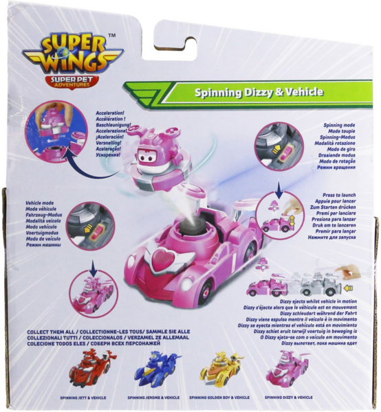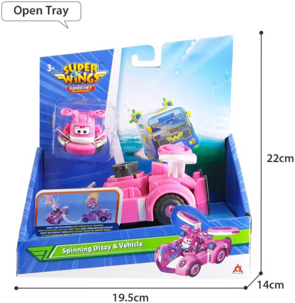 Ігровий набір Super Wings Spinning Vehicle Діззі - чудовий подарунок для маленького мрійника. Ласкаво просимо в новий захопливий сезон світового хіта Super Wings - продовження 3D-анімованого серіалу, що розповідає про пригоди літачка Джетта і його нових друзів. У команді Супер крил з'явилися нові друзі - супер улюбленці, які посилюють здібності Super Wings і виводять їх на новий рівень. Супер улюбленці мають нову захопливу здатність. Приєднавшись до Super Wings, вони зможуть поліпшити їх, надавши Джетту і його друзям Super Wing неймовірне нове спорядження і можливості. Super Wings - це завжди супер пригоди.