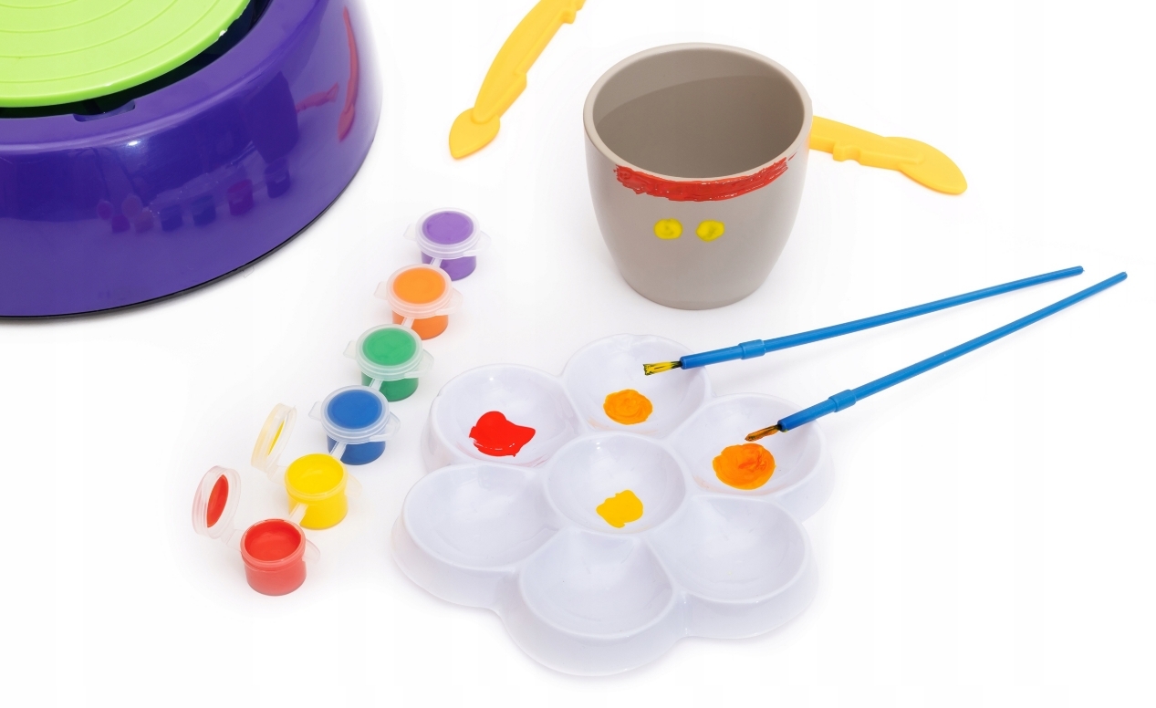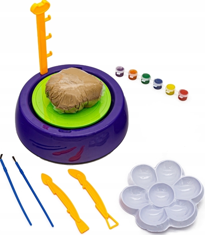 | Комплектація (можливі зміни в різних поставках) | Акрилові фарби – 6 шт., Глина - 2 шт., Гончарне коло з диском, Пензлик – 2 шт., Палітра, Ріжучий шнур з ручками, Скульптурний інструмент – 2 шт. |