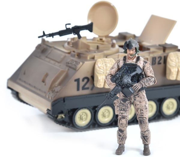 Набір "Бронетранспортер M113" складається з броньованої машини та бійця з аксесуарами, включаючи змінний шолом з прибором нічного бачення.