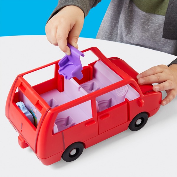 Пеппа та її маленька сестричка Еві вирушають у подорож на великому родинному автомобілі. Цей яскравий транспорт має відкритий верх, щоб зручно розміщувати фігурки, а також рухомі дверцята, капот та багажник. Маленькі шанувальники мультфільму зможуть уявити, як родина вирушає на пікнік, у парк або просто катається містом. У машині є спеціальне місце для дитячого сидіння, щоб Еві їхала з комфортом. Починайте веселощі з Пеппою.