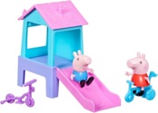 Пеппа та Джордж вирушають на прогулянку до парку, де на них чекає справжнє свято розваг. У цьому яскравому наборі є все, щоб створити веселі історії: гірка, клубний будиночок та навіть два велосипеди. Маленькі шанувальники мультфільму зможуть уявити, як герої катаються, граються та сміються разом на свіжому повітрі. Починайте веселощі з Пеппою.