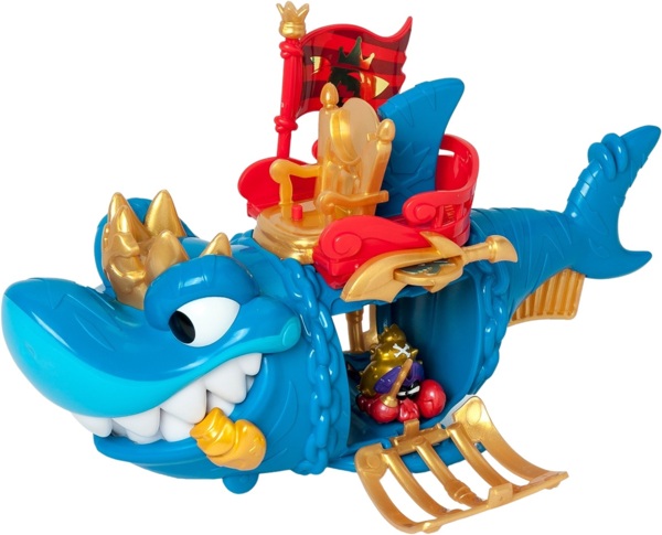 Вставте прапор з правої сторони у тримач, посадіть капітана на трон та рушайте. На череві акули є рухомі колеса, завдяки яким ви можете рухати акулу по поверхні.