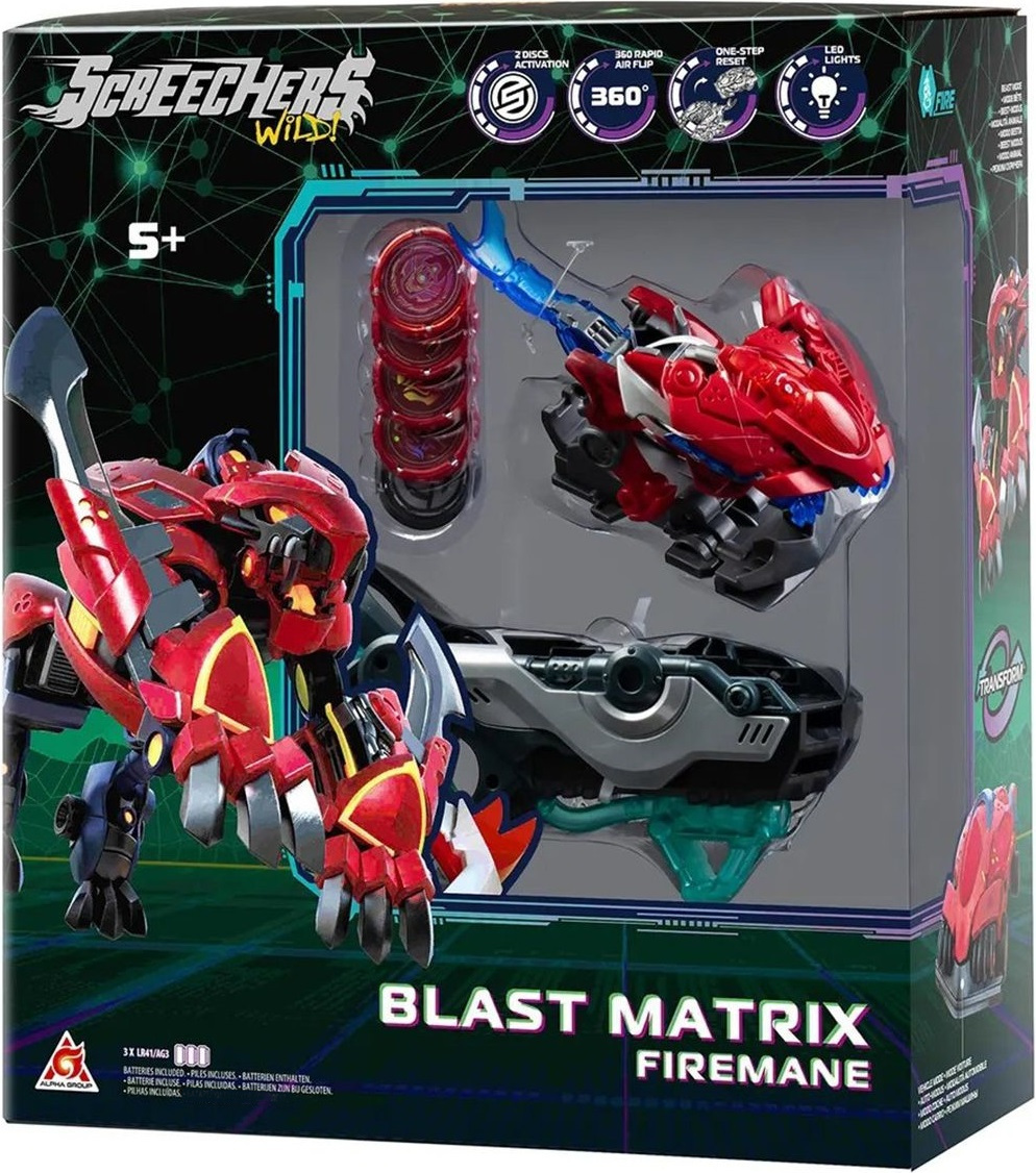 Прокачайте гру з ігровим набором Screechers Wild! S5 L2 - Файермен. Скрічер трансформується з крутого авто у потужного бойового звіра чи робота з допомогою запускача-бластера і магнітного енергодиска. У скрічера є елементи, що світяться.