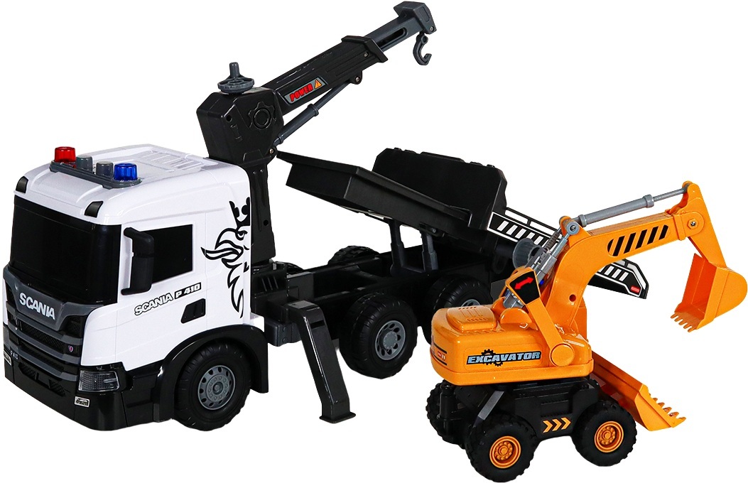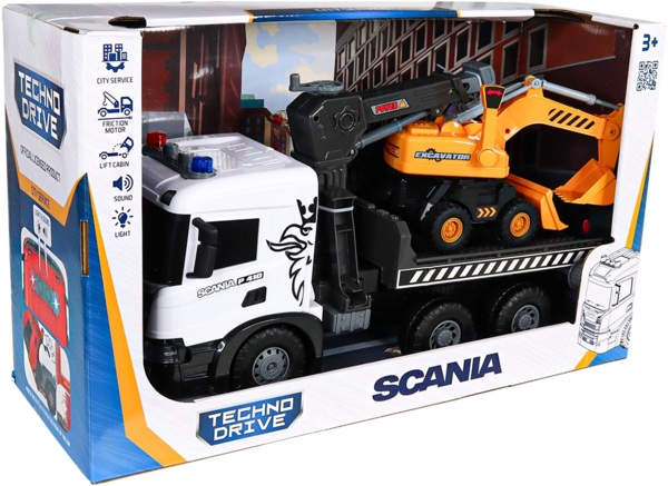 Ігровий набір TechnoDrive - Автокран Scania з екскаватором (світло, звук), (5004KS)