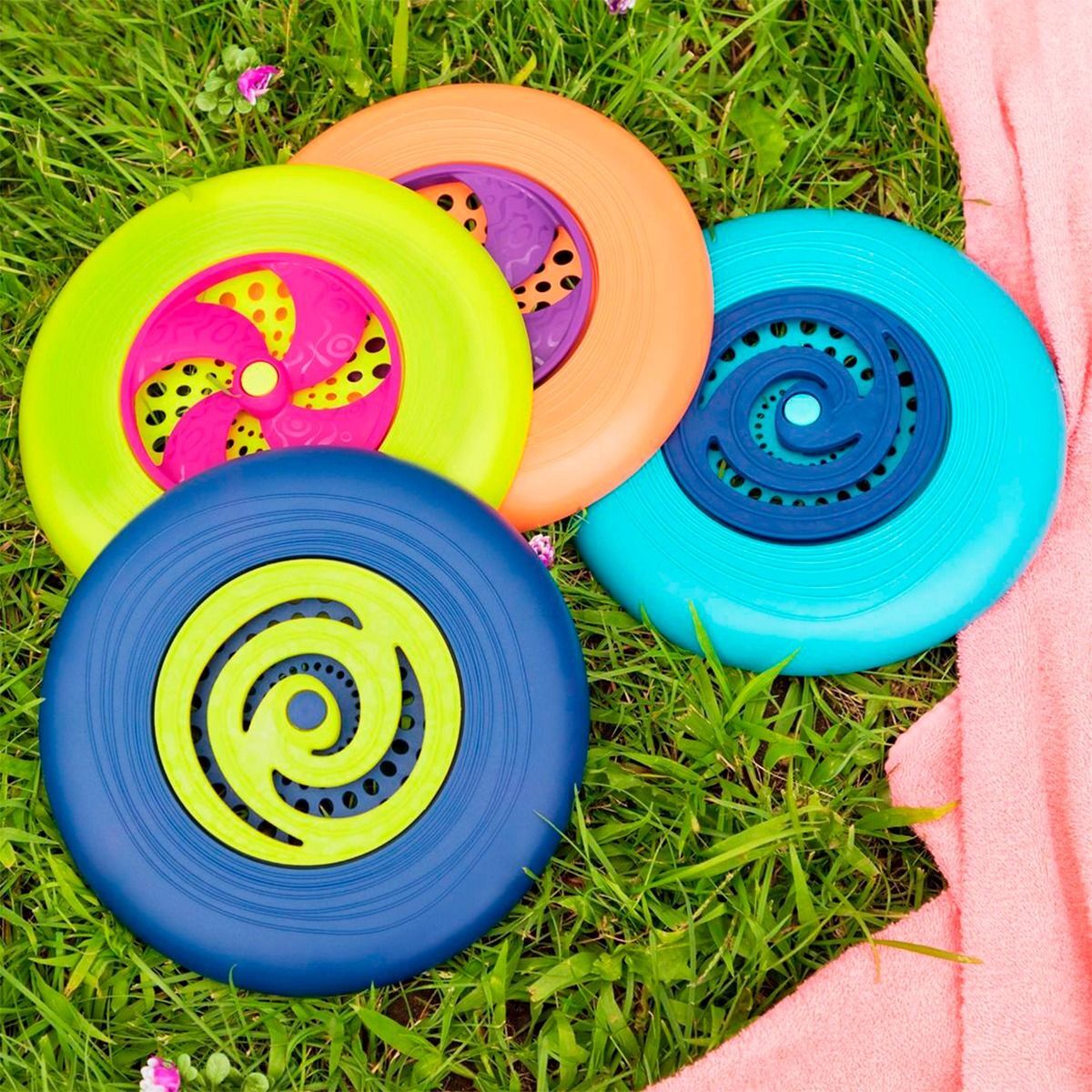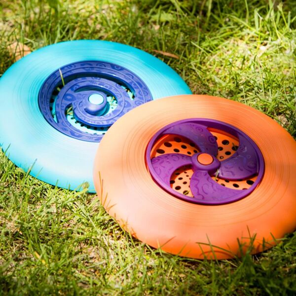 Фрісбі з вбудованим обертовим мінідиском - диском не тільки цікаво запускати, а й приємно ловити прямо в руки. Можна крутити тарілку на пальцях, перекочувати, перекидати, тим самим тренуючи спритність рук і координацію.