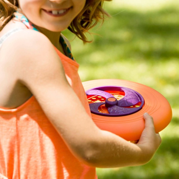 Фрісбі з вбудованим обертовим мінідиском - диском не тільки цікаво запускати, а й приємно ловити прямо в руки. Можна крутити тарілку на пальцях, перекочувати, перекидати, тим самим тренуючи спритність рук і координацію.