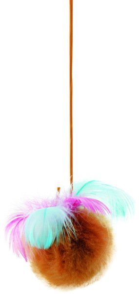 Іграшка для котів Природа "М'ячик" хутр. з пір'ям на резинці