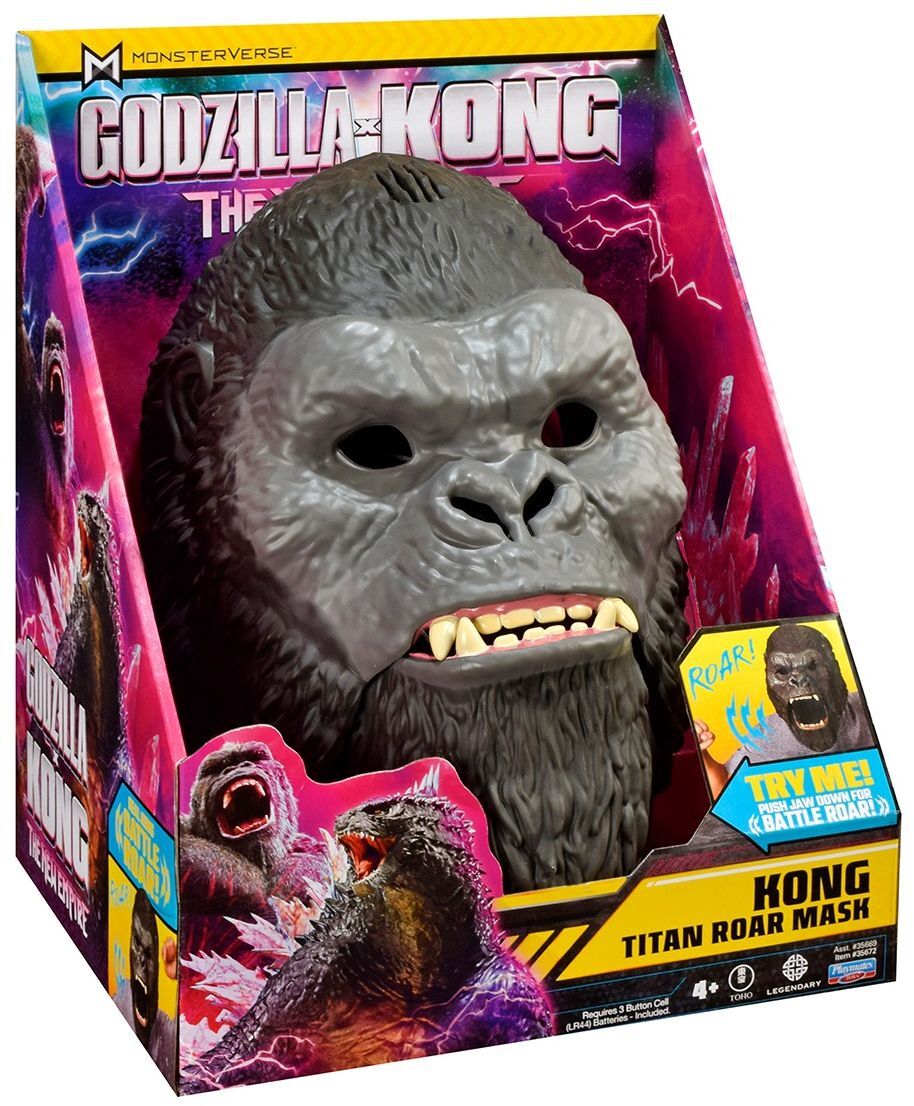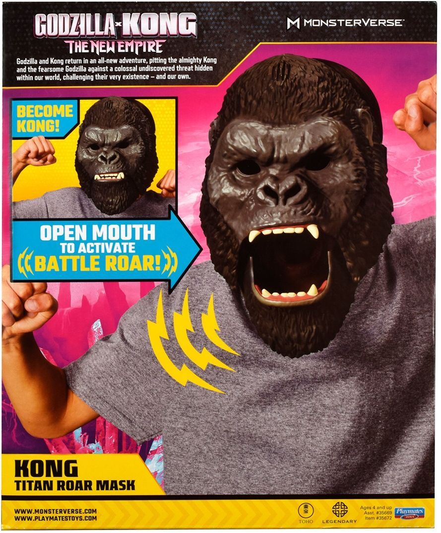 Поверніться на порожню землю з Ґодзіллою та Конгом у новій пригоді! Коли в нашому світі з’являється колосальна загроза, Ґодзілла та Конг вирішили боротися разом, щоб захистити своє існування - і наше власне! Зустрічайте героїв найочікуванішого блокбастера 2024 року «Ґодзілла та Конг: Нова імперія»! Перетворіться на короля Острова Черепа з інтерактивною маскою Конга, що відтворює його вигляд з кіно. А от чи буде Кінг-Конг захисником або погрозою для всього існуючого – залежить тільки від Вас!