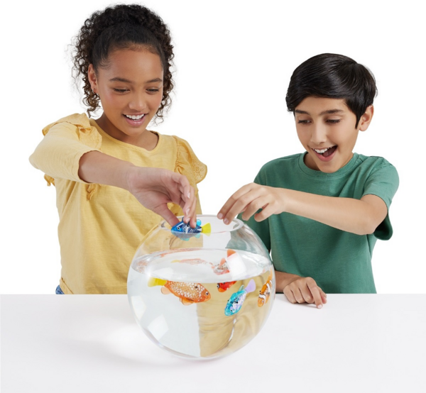 - При попаданні у воду рибка починає махати хвостом і реалістично рухатися.