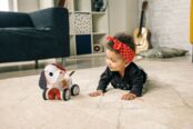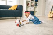 Ця інтерактивна іграшка-каталка створена, щоб заохочувати малюка до активних рухів і розвивати важливі навички. Гнучкий корпус Чарлі дозволяє йому котитися прямо або по колу, що стимулює дитину повзати, пересуватись і зміцнювати м'язи. Весела музика, гавкіт при натисканні на носик і м’які вушка дарують справжню радість від гри. Чарлі реагує на дотик, відтворює знайому музичну гаму та драйвові мелодії — це не просто каталка, а справжній музичний ігровий центр для розвитку рухливості, сенсорного сприйняття і соціальної взаємодії.