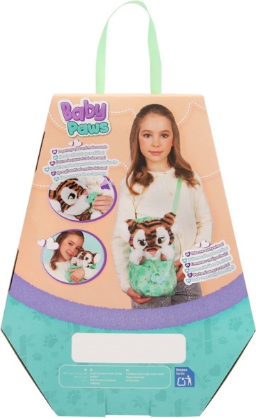 Знайомтеся з милим тигреням з колекції "Baby Paws". Воно любить засинати з пустушкою, не забувайте вкривати його ковдрою. Дістаньте чи вставте пустушку до рота тигреняті, щоб почути милі звуки. Навчайтеся турботи через гру.