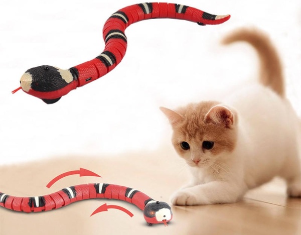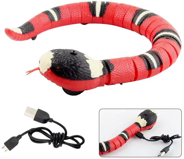 Реалістична іграшка, що повзає S-подібною траєкторією, реагує на дотик, блимає очима та уникає перешкод. Створена для стимуляції активності домашніх тварин.