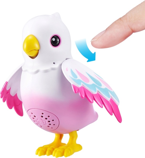 Коли почуєте звук цвірінькання, погладьте Поллі по спинці та говоріть — вона повторить ваші слова своїм магічним голосом. Щоб вийти з цього режиму — потрясіть Поллі ще раз.