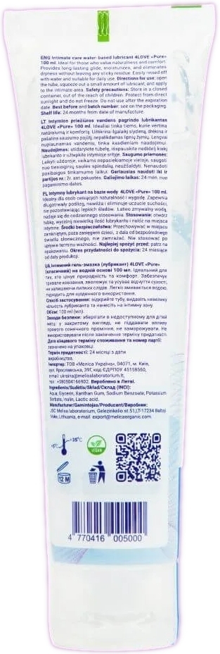 - Інтимний гель-змазка 4Love Pure лубрикант на водній основі Класичний 100 мл