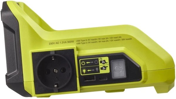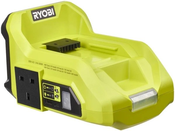 Достаточно мощный, максимальная выходная мощность в 36В, можно подключать сразу несколько устройств. Легкий и мобильный, разобраться в принципе работы легко. При выборе инвертора ориентировался именно на надежный бренд, производитель RYOBI известен своими инструментами. Но нужно докупать отдельно аккумуляторы и зарядное устройство, так сразу не воспользуешься.