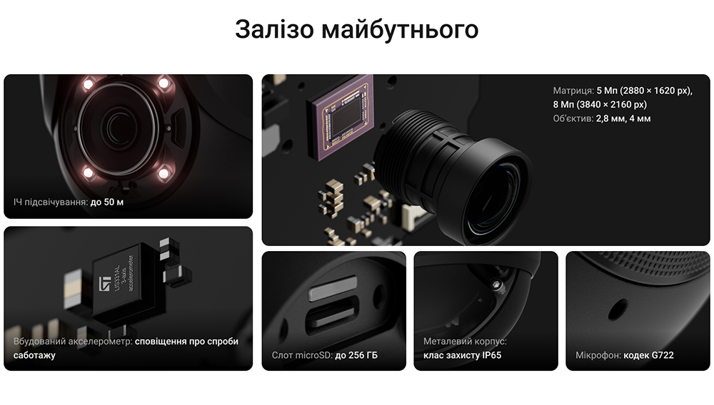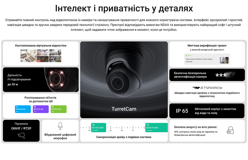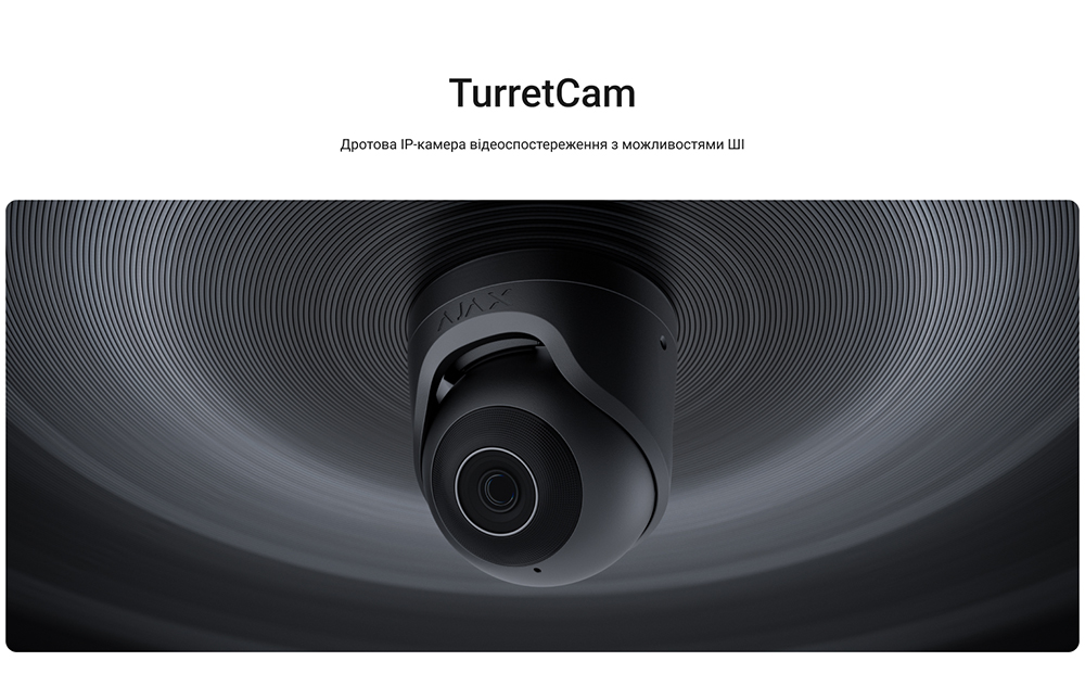Схожі товари IP-Камера дротова купольна Ajax TurretCam, 8мп, 4мм, White (000039325)
