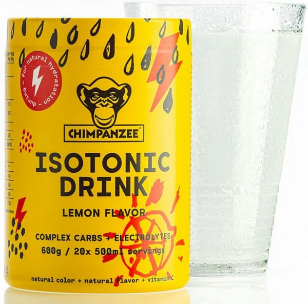 Натуральний ізотонічний напій Chimpanzee Isotonic Drink Lemon в пакетику об'ємом 30 г (1 порція). Підвищує витривалість і забезпечує організм додатковою енергією під час тривалих фізичних навантажень. Відновлює водно-сольовий баланс, захищаючи від судом. Рекомендований для змагань, активних тренувань (біг, велоспорт, тріатлон, скелелазіння), походів із рюкзаком.