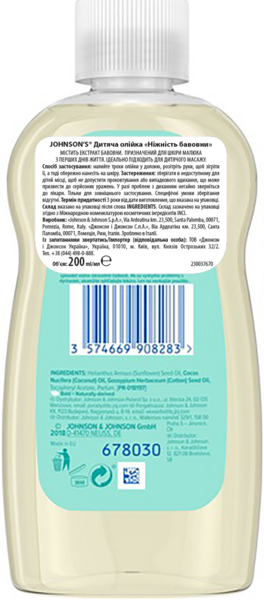 Олія дитяча Johnson's baby Ніжність бавовни 200мл