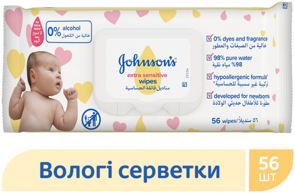 Серветки вологі дитячі Johnson's Екстра ніжні 56шт