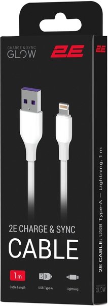 Схожі товари Кабель 2E USB-A - Lightning Glow 1m White (2E-CCAL-WH)