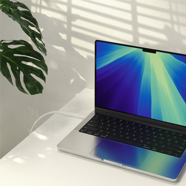 Кабель підтримує швидку зарядку потужністю до 240 Вт для ноутбуків, планшетів і смартфонів. Наприклад, він дозволяє зарядити 14-дюймовий MacBook Pro від 0 до 50% лише за 31 хвилину. Вбудовані подвійні чіпи E-marker з функцією OTP (захист від перегріву) гарантують стабільну та безпечну роботу під час високонавантажених циклів зарядки.