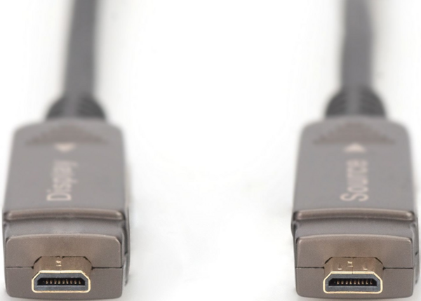 Гібридна конструкція, яка використовує мідний і оптоволоконний кабель, запобігає електромагнітним перешкодам. Це забезпечує передачу без втрат по всій довжині кабелю з роздільною здатністю до 4K/60 Гц і пропускною здатністю до 18 Гбіт/с. Завдяки використанню оптоволоконного кабелю діаметр цього кабелю дуже малий, він має дуже малий радіус вигину і малу вагу. Він ідеально підходить для використання в будинках, кімнатах для переговорів і конференц-залах, а також всередині будівель - і це лише деякі з можливих застосувань. Проста установка зручна для користувача - просто підключіть кабель і відразу ж насолоджуйтеся оптимальною якістю зображення.