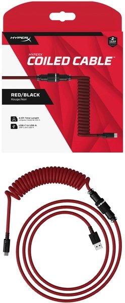 Кабель HyperX USB-A-Type-C спіральний, 1.37м Red/Black (6J677AA)