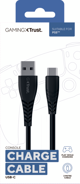 - Кабель Trust USB-A - Type-C GXT 226 for PS5 3m, Black (24168_TRUST)